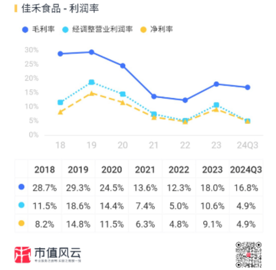 受植脂末主要原材料(食用油、葡萄糖浆、乳粉等)价格波动影响,该业务毛利率波动较大,导致公司综合毛利率总体有一定下滑,前三季度毛利率为16.8%。