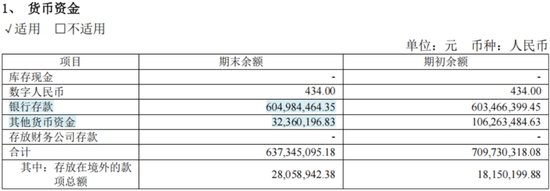 截至今年三季度末,公司账上货币资金4.9亿元,交易性金融资产5.8亿元,有息负债合计2.5亿元,扣除有息负债后的类现金资产为8.2亿元。