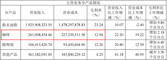 由于下游客户采购规模较大,议价能力较强,同时终端市场竞争激烈,供应链内卷严重,公司咖啡业务毛利率整体处在较低水平。