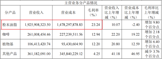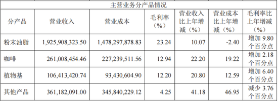 其中,粉末油脂营收同比下滑42.2%,接近腰斩。